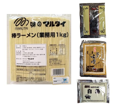 マルタイ 棒ラーメン(業務用) (1㎏ × 1袋) + 創味ラーメンスープ(鶏ガラ醤油、味噌、白湯 、各1袋) ハピマテ開封日シール付