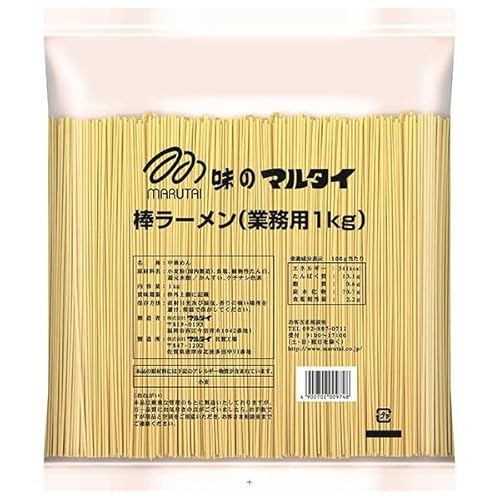 マルタイ棒ラーメンの業務用1kgパック(Amazon)は、徹底的にコストを抑えた「麺のみ」の製品です。